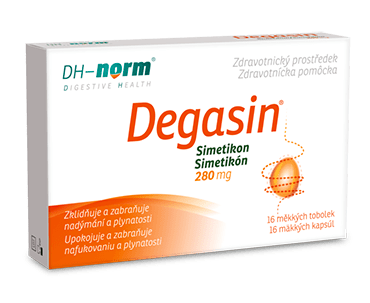 Zdravotnícka pomôcka Degasin obsahuje účinnú látku simetikón. SIMETIKÓN je fyziologicky inertná aktívna zložka, ktorá znižuje povrchové napätie vzduchových bublín v tráviacom trakte a umožňuje ich rozpad. Simetikón sa v tele nevstrebáva do krvného obehu, a preto je pre telo bezpečný.